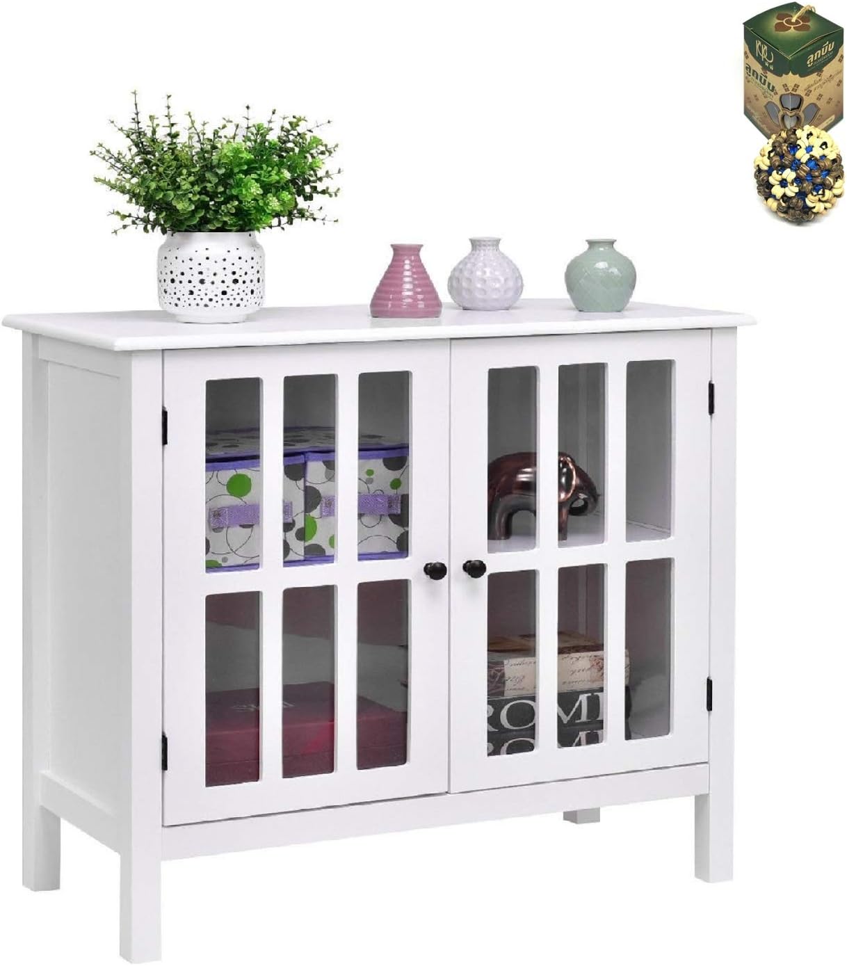 Amazon Com Glass Door Sideboard Console Storage Buffet Cabinet White By Spiritone Gift Coconut Shell Massage Ball Kitchen Dining Buffet Cabinet White