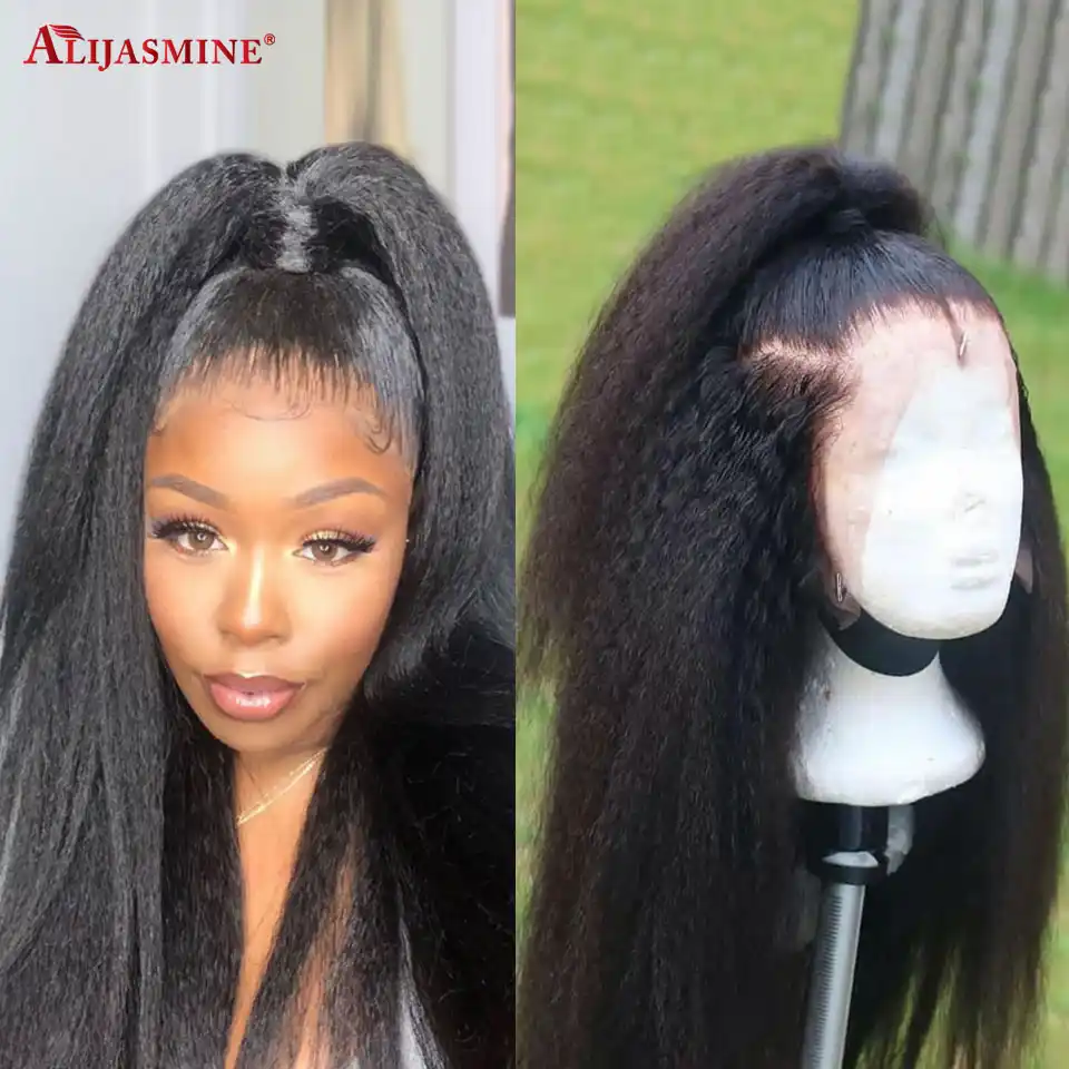 Alijasmine 130 150 180 Density Kinky Straight Full Lace Wigs With Baby Hair Pre Plucked Brazilian Remy Hair Yaki Human Hair Wigs Aliexpress Full Lace Aliexpress Human Hair Wigs